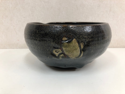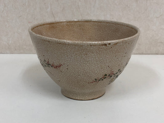 Y3913 CHAWAN Raku-ware color picture Japan antique tea ceremony bowl cup pottery