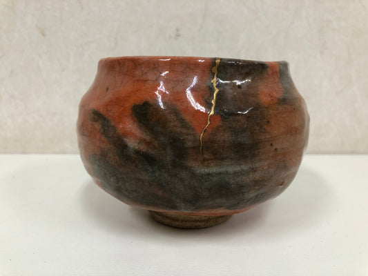 Y3936 CHAWAN Raku-ware Red kintsugi 12th Kounyu signed box Japan tea ceremony