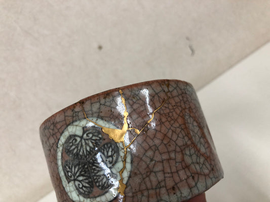 Y3939 CHAWAN Ofuke-ware kintsugi Aoi crest Japan antique tea ceremony bowl cup
