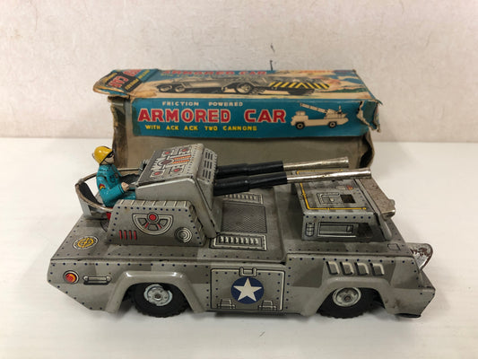 Y3971 TIN TOY Tank armored car combat vehicle box Japanese antique vintage