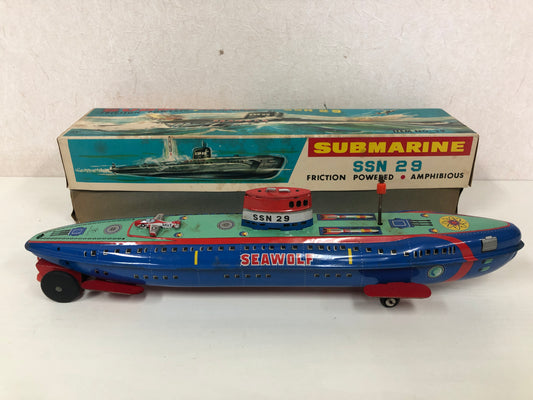 Y3972 TIN TOY Yonezawa Submarine watercraft box Japanese antique vintage