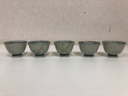 Y3980 CHAWAN Mokubei Sencha bowl set of 5 kintsugi Japan antique tea pottery