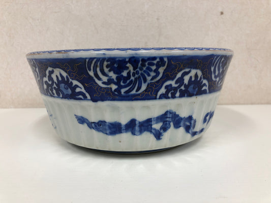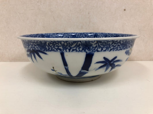 Y3985 CHAWAN Seto-ware Underglaze blue Flower Bird Japan confectionery bowl