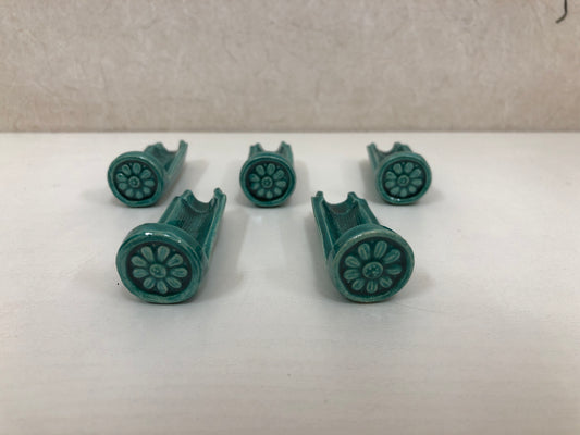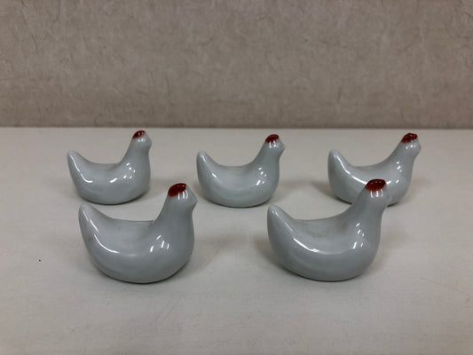Y3987 OKIMONO Pottery Chopstick rest set of 5 Bird Japanese antique collectible