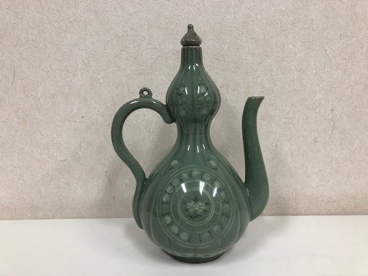 Y4031 TEA POT Goryeo Celadon Water Jug signed box Yu Hegan Korea antique vintage