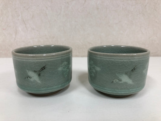 Y4035 YUNOMI Goryeo Celadon pair signed box Yu Hegan Korea antique tea ceremony