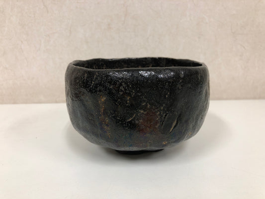 Y4040 CHAWAN Raku-ware Black box kintsugi Japan antique tea cremony pottery
