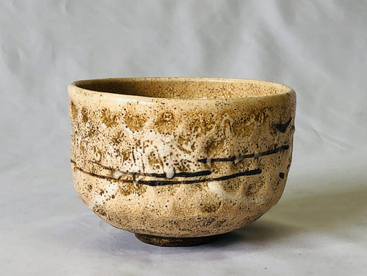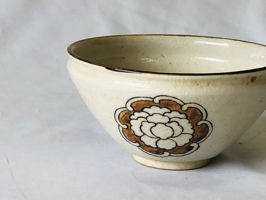Y5012 CHAWAN Seto-ware family crest Japan antique tea ceremony pottery bowl