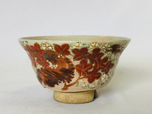 Y5015 CHAWAN Inuyama-ware signed autumn leaves Japan antique tea ceremony bowl