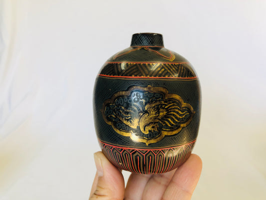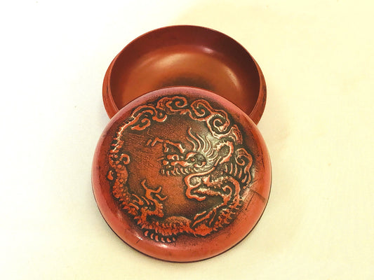 Y5023 BOX Vermillion Insence container dragon signed repaint Japan antique aroma