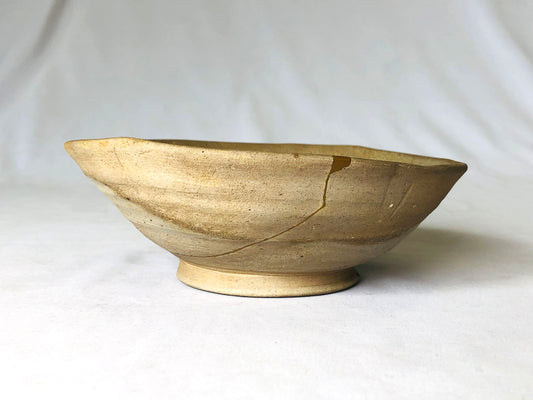 Y5026 CHAWAN Sanage-ware flat kintsugi box Japan antique tea ceremony pottery