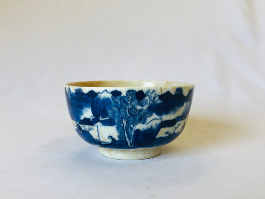 Y5036 CHAWAN Underglaze blue signed box China antique tea ceremony pottery bowl