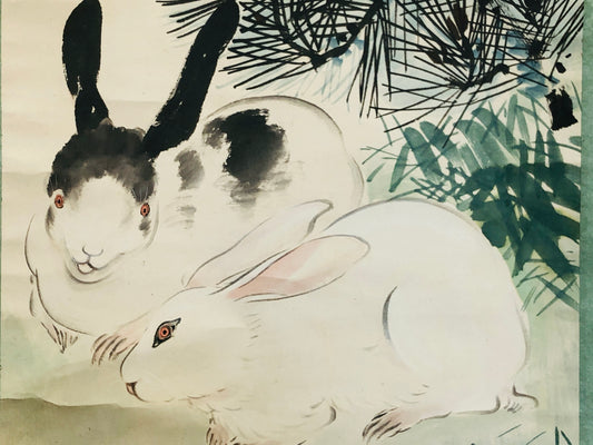 Y5076 KAKEJIKU Rabbit hare signed Japan hanging scroll interior wall decor