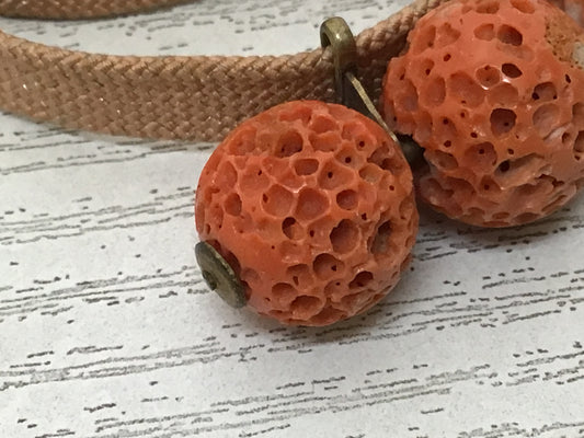 Y2299 OBIDOME Sash Clip brooch weathered Coral Japanese Kimono vintage antique