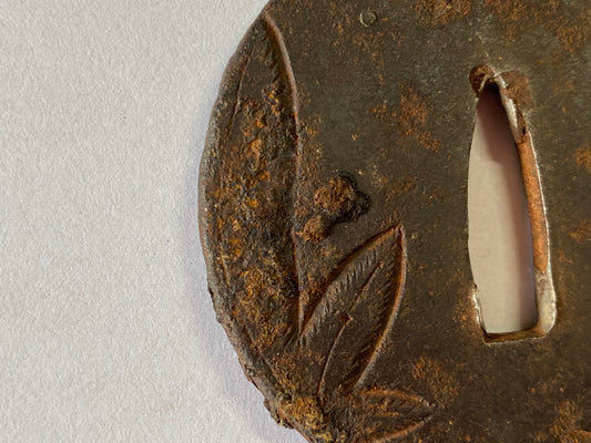 Y2315 TSUBA sword guard leaf inlay Japanese samurai katana antique koshirae edo