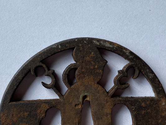 Y2316 TSUBA Iron sword guard openwork Japan samurai katana antique koshirae edo