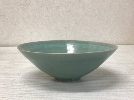 Y2327 CHAWAN Goryeo celadon Ryukaigo flat signed box Korea bowl tea ceremony