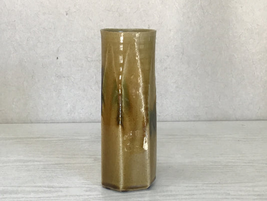 Y2349 FLOWER VASE Seto-ware Yellow signed box Japan antique ikebana home decor