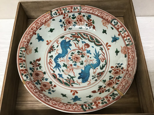 Y2357 DISH Gosuakae large plate platter kitsugi box Chinese antique vintage