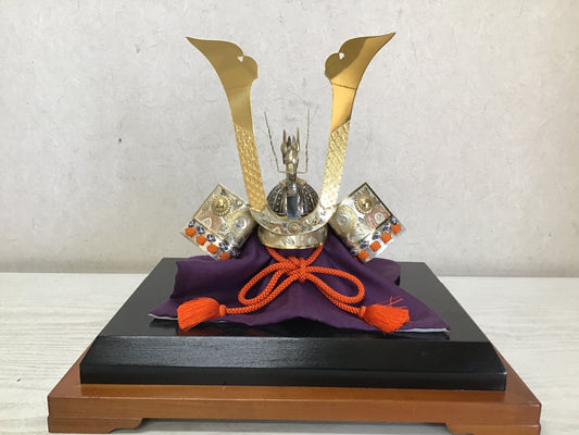 Y2374 OKIMONO Sterling Silver Kabuto helmet figure glass case box Japan antique