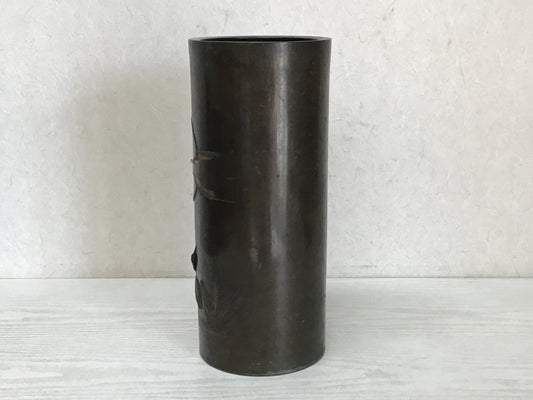 Y2383 FLOWER VASE Copper Inlay tubular Japan antique ikebana home decor interior