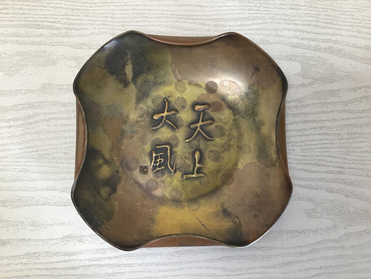 Y2500 YATATE Copper Hannya inlay Japan Ink and Pen Holder Brush & Inkwell
