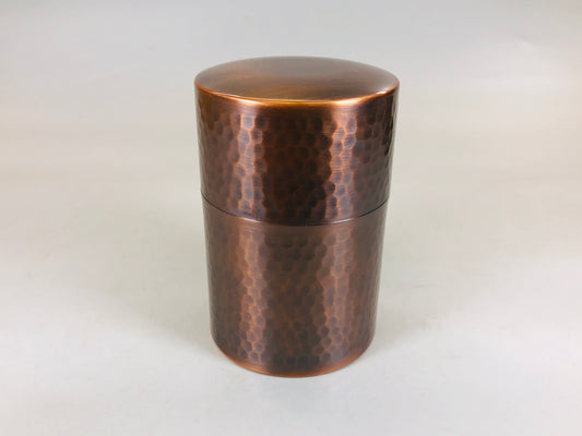Y5586 TEA CADDY Pure Copper canister CHATAKU dish signed box Japan antique