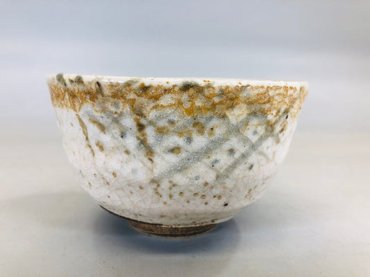 Y5604 CHAWAN Shino-ware signed box Japan antique tea ceremony bowl pottery