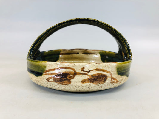 Y5627 DISH Oribe-ware Bowl handle signed box Japan antique tableware vintage