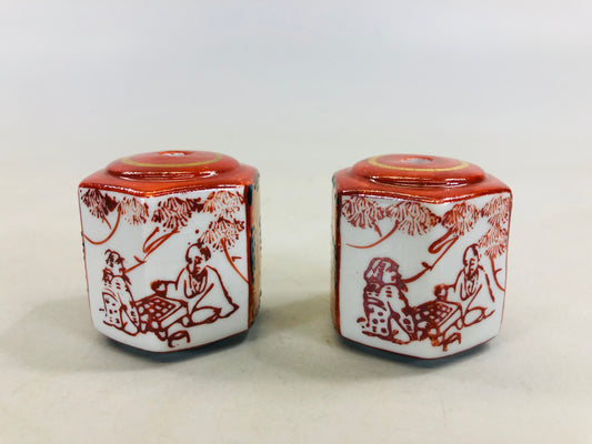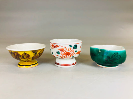 Y5634 CHAWAN Kutani-ware Sake cup signed box set of 3 Japan bowl antique pottery