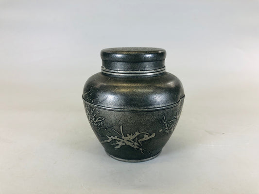 Y5637 TEA CADDY Tin container case signed Japan tea ceremony antique vintage