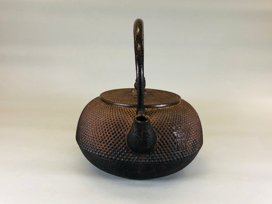 Y5639 TETSUBIN Iron kettle Iwachu signed Arare pattern Nambu Japan antique pot