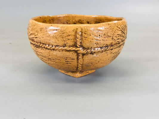 Y5680 CHAWAN Seto-ware bale shape signed Japan antique tea ceremony bowl pottery