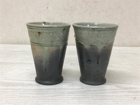 Y2727 CUP Kyo-ware pair glassware signed box Japanese antique tableware vintage