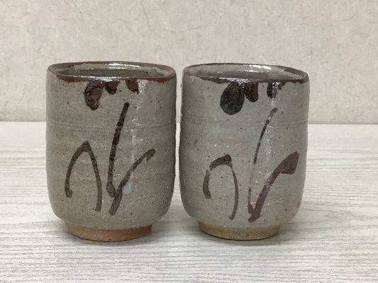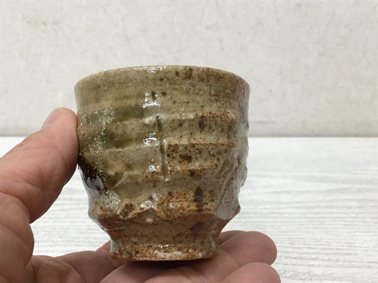 Y2729 YUNOMI Karatsu-ware cup signed box Japanese pottery antique vintage