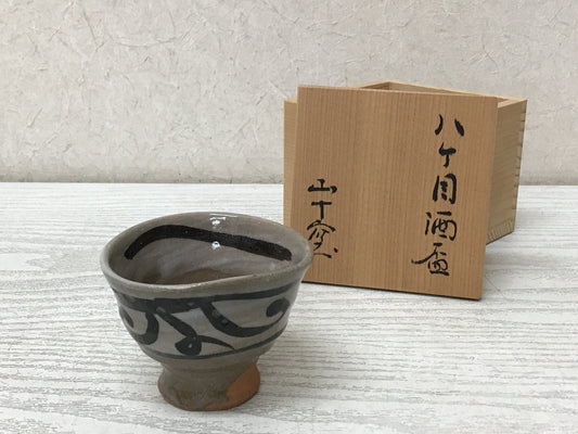 Y2762 CHAWAN Yuteki sake cup signed box Japanese bowl pottery Japan antique