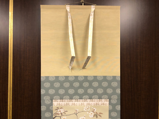 Y7843 KAKEJIKU Cherry blossoms bird signed box Japan antique hanging scroll art