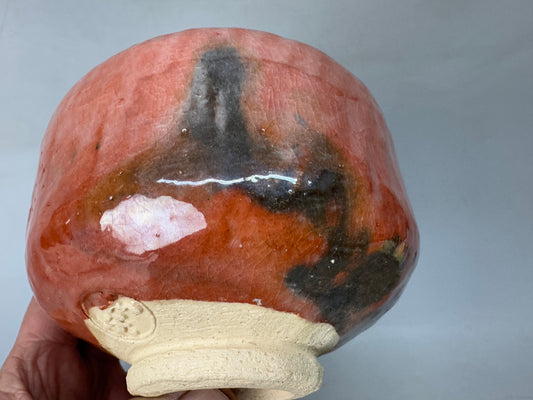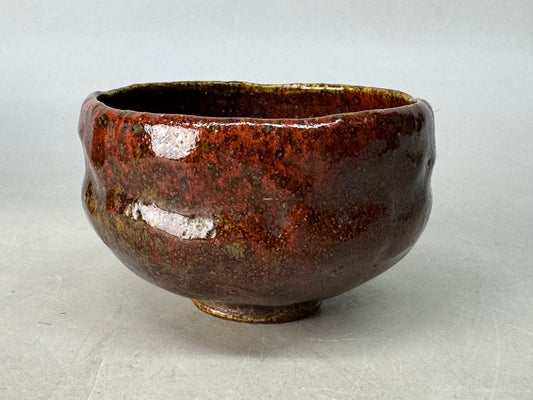 Y8585 CHAWAN Raku-ware red bowl signed Japan antique tea ceremony pottery cup