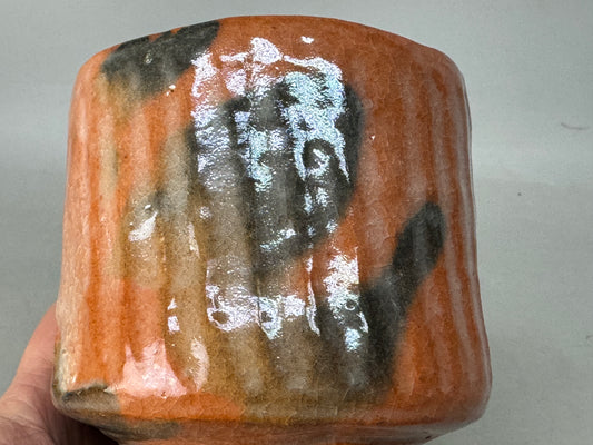 Y8655 CHAWAN Raku-ware red tube bowl signed box Japan antique tea ceremony cup