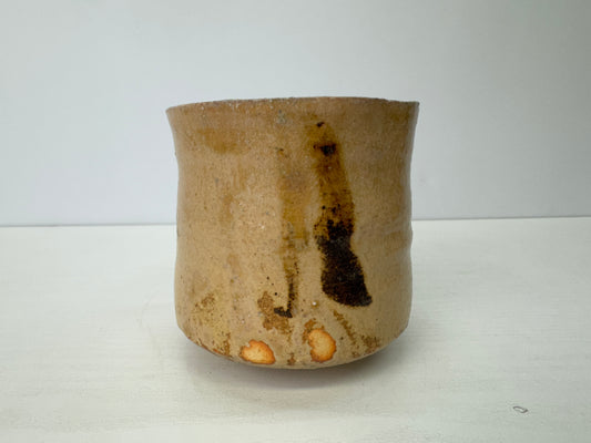 Y9193 CHAWAN Kiseto-ware tubular bowl signed box Japan antique tea ceremony cup