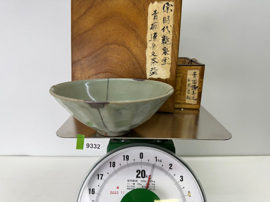 Y9332 CHAWAN Celadon bowl kintsugi box China antique tableware pottery kitchen