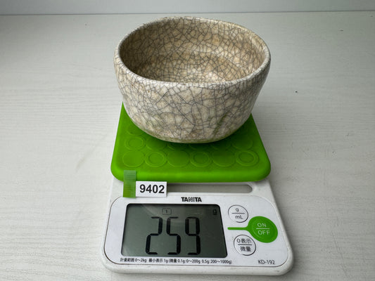 Y9402 CHAWAN Raku-ware white bowl signed Japan antique tea ceremony pottery cup