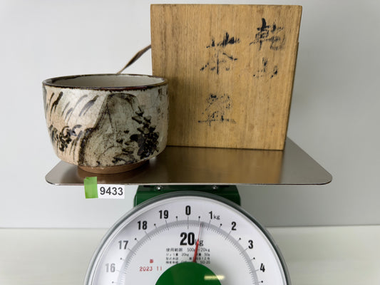 Y9434 CHAWAN Shino-ware bowl signed box Japan antique tea ceremony teacup cup