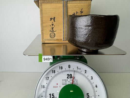 Y9491 CHAWAN Raku-ware Black bowl signed box Japan antique tea ceremony pottery
