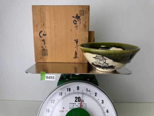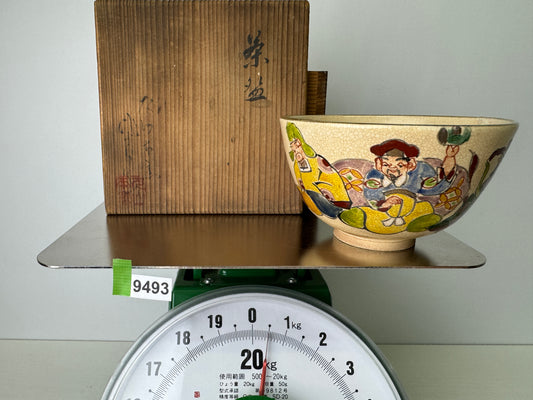 Y9493 CHAWAN Kyo-ware bowl color picture signed box Japan antique tea ceremony