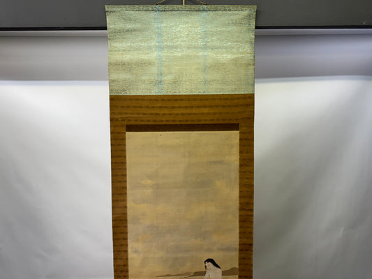 Y9586 KAKEJIKU Beautiful woman signed box Japan antique hanging scroll interior