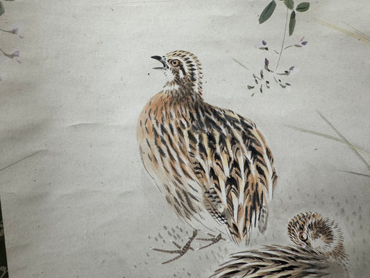 Y9587 KAKEJIKU Quail bird signed box Japan antique hanging scroll art interior