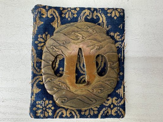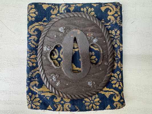 Y9579 TSUBA Iron sword guard bag Japan samurai katana antique koshirae edo bushi