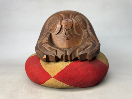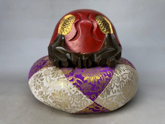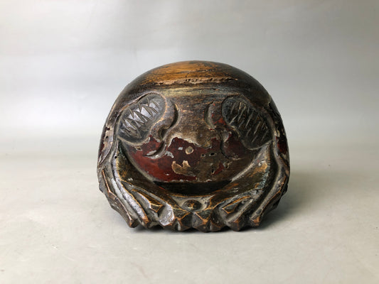 Y8865 MOKUGYO wooden Buddhist Monk Instrument Makie cushion Japan antique temple