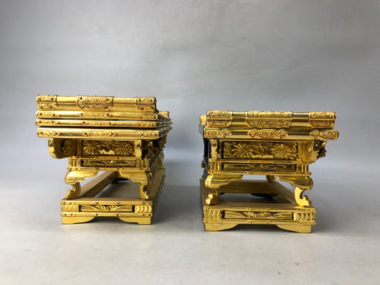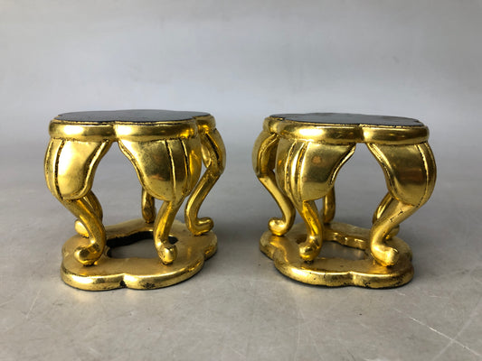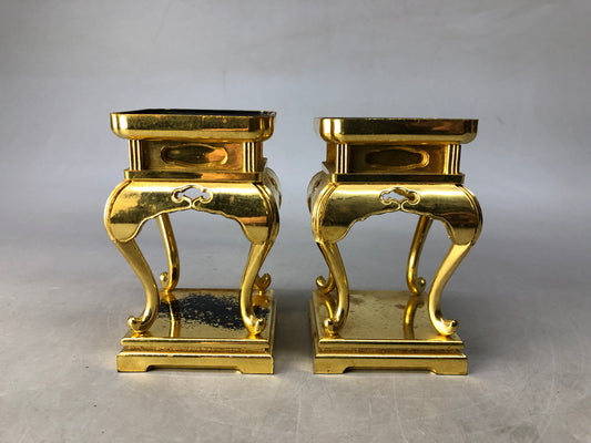 Y8344 Buddhist Altar Equipment small flower stand pair gold paint Japan antique